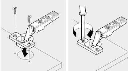 - Beim Schraubtopf wird das Scharnier festgeschraubt.