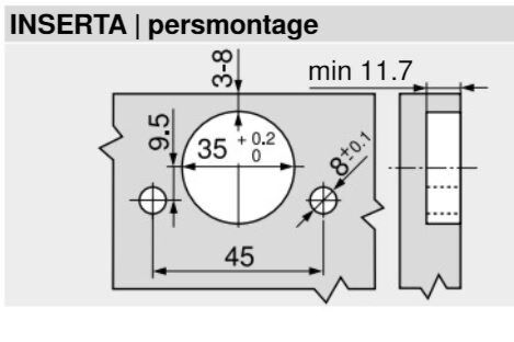 - Für Inserta benötigen Sie eine Bohrschablone, zum Beispiel eine Blum Ecodrill oder Bohrschablone - 65.059A
