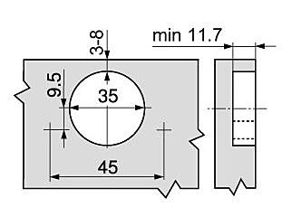 Dieses Scharnier ist einliegend zu machen mit Montageplatte Dicke 9 mm - 175H7190