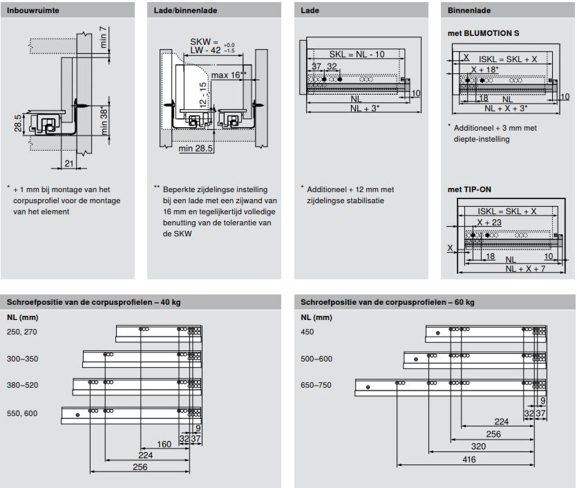 Schienenset Blum Movento-S 760H - Blumotion/Tip-On Blumotion - 270 bis 600 mm - 40 kg