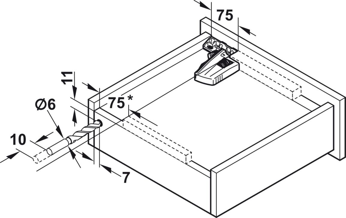 Anwendung: Nur für Holzschubladen mit einer Seitenwandstärke von max. 16 mm