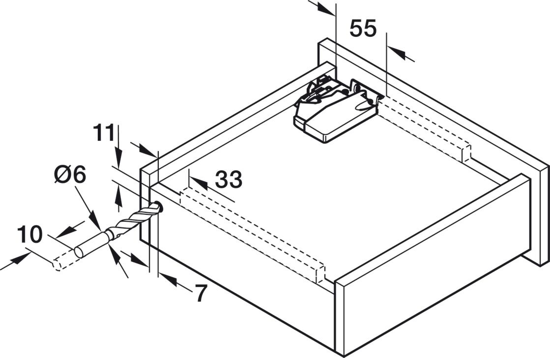 Anwendung: Geeignet für Holzschubladen mit Seitenwandstärke: ≤ 16 mm