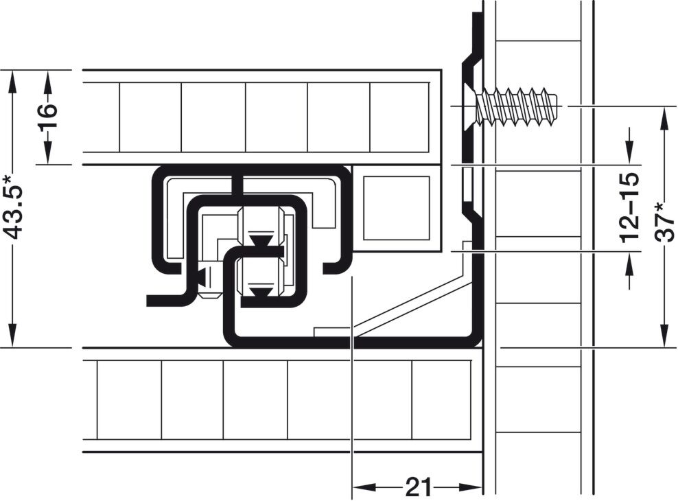 Montage: An der Seitenwand des Schranks - Spanplattenschraube: ø 4 x 15 mm - Systemschraube: Länge: 13,5 mm