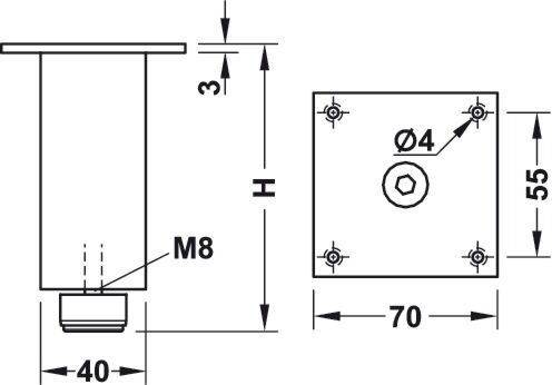 Möbelfuß - Lackiertes Aluminium - Höhenverstellbar - Höhen: 50, 80, 100, 150 mm