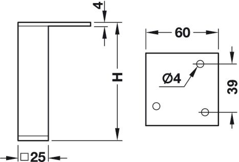 Möbelfuß - Edelstahl gebürstet - Höhen: 80, 100, 150, 200 mm - Eckmontage