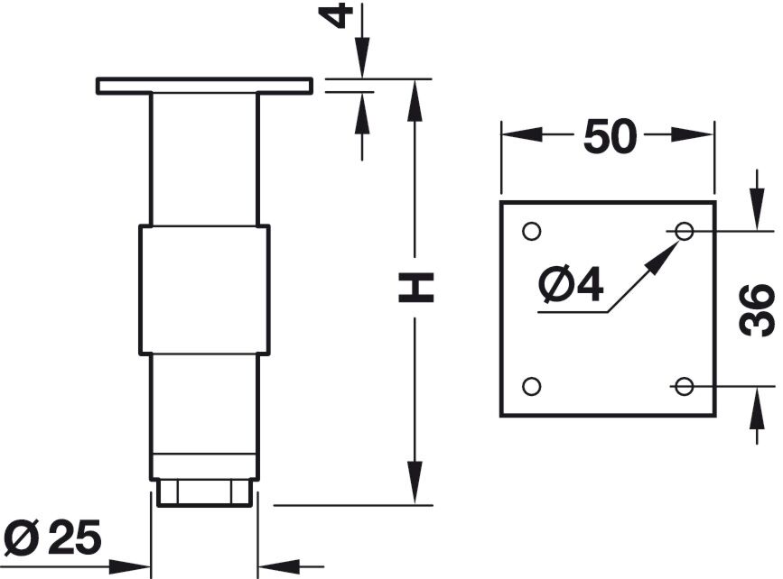 Möbelfuß - Edelstahl glänzend - Höhenverstellbar - 2 Höhen: 100, 150 mm