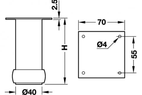 Möbelbein - Aluminium - Edelstahloptik - Gebürstet - 3 Höhen