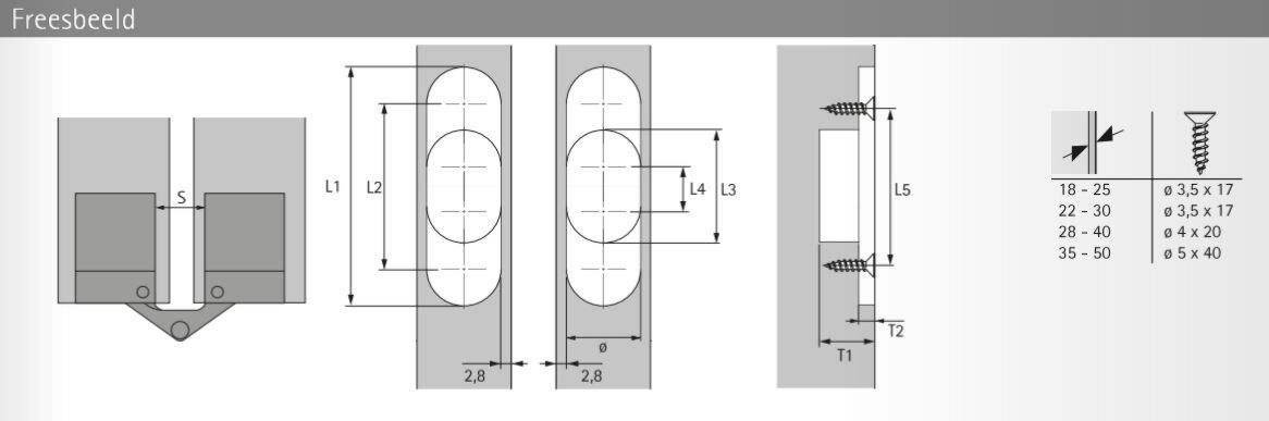 - Türdicke: 18 - 25 mm - Max. 7 kg bei 2 Scharnieren - Länge: 44.5 mm