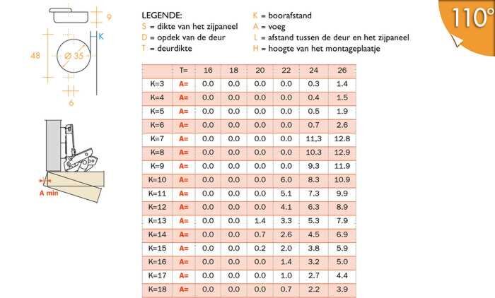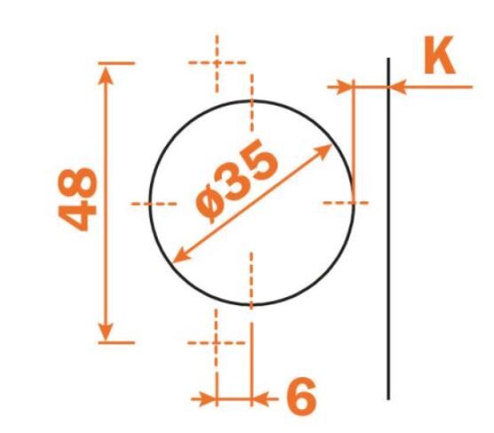 - Bohrabstand (K) von 3 bis 18 mm für eine gerade Tür möglich, für spezielle Anwendungen sogar mehr.